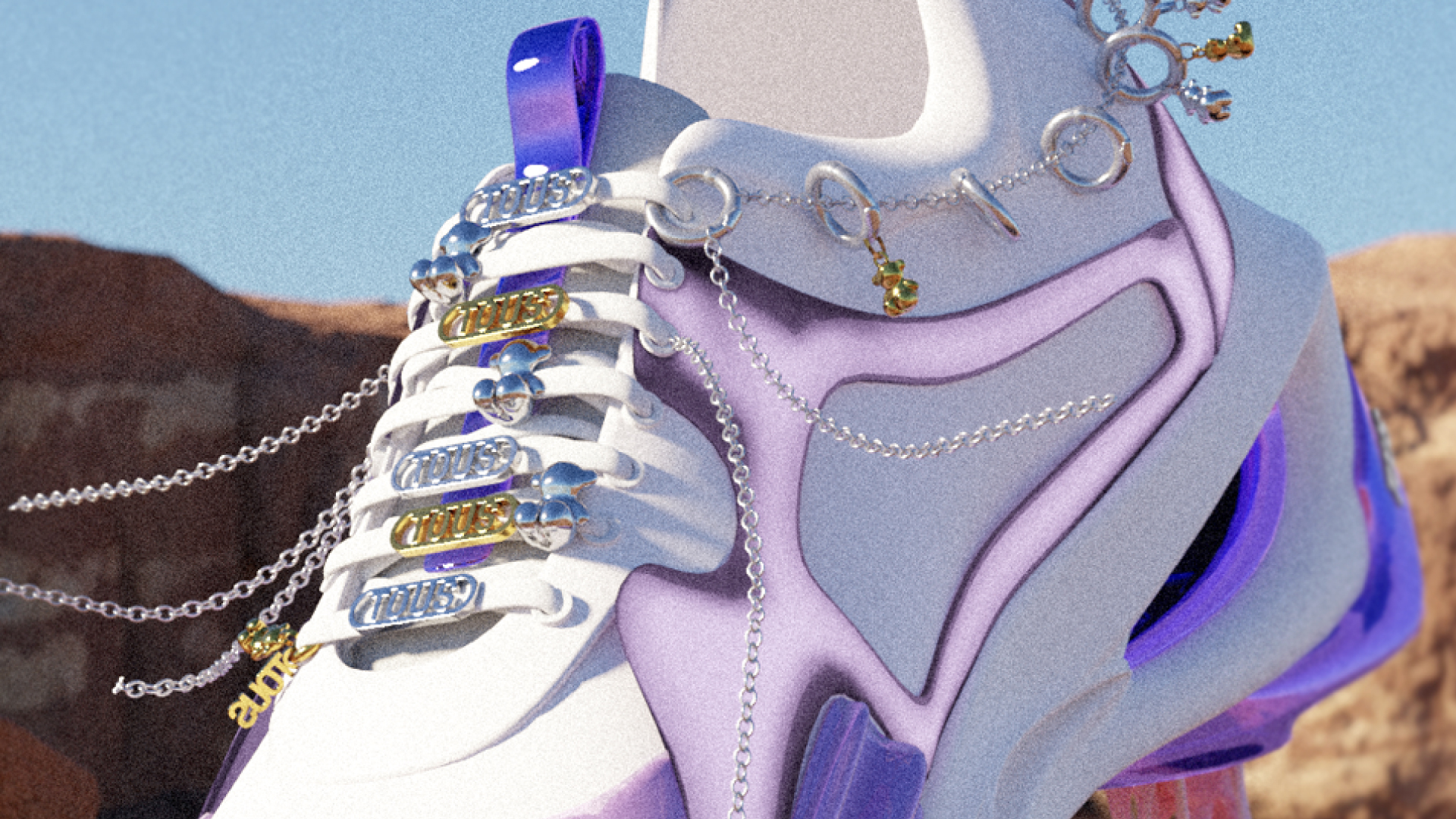 Art direction and creativity for the exclusive “Tous Steps” sneaker jewelry collection. The shoe is a creation of the 3D designer Adrian Besada and the campaign is styled by Alicia Padrón.